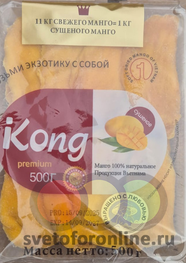 Манго сушеное натуральное KONG 500г - Купить в магазине "Светофор" город Москва, Юрловский проезд, д 13