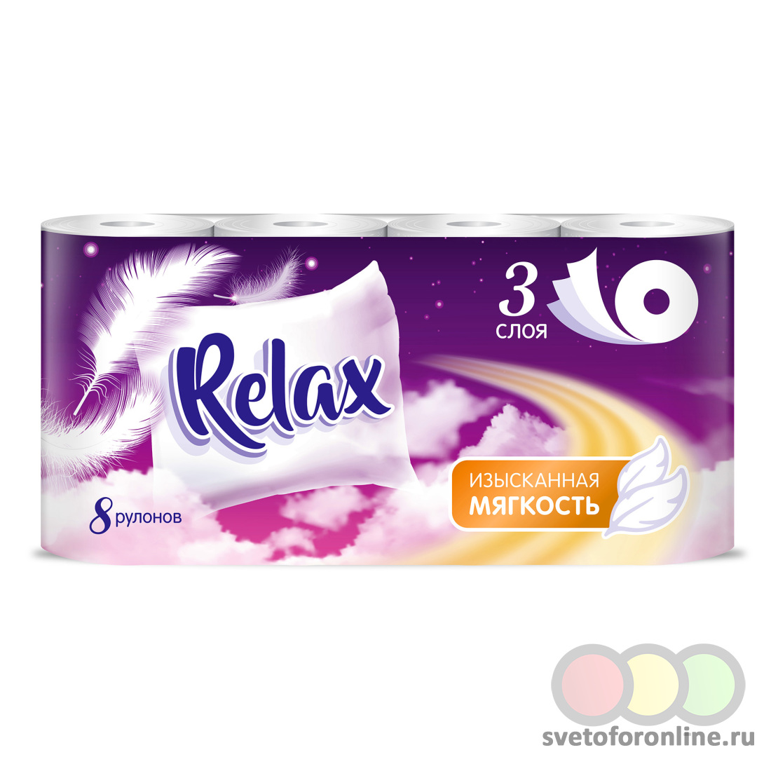 Туалетная бумага Relax 3сл 8 рул*16,5 м 100% целлюлоза, Архбум тиссью групп ООО - Купить в магазине "Светофор" город Москва, Юрловский проезд, д 13