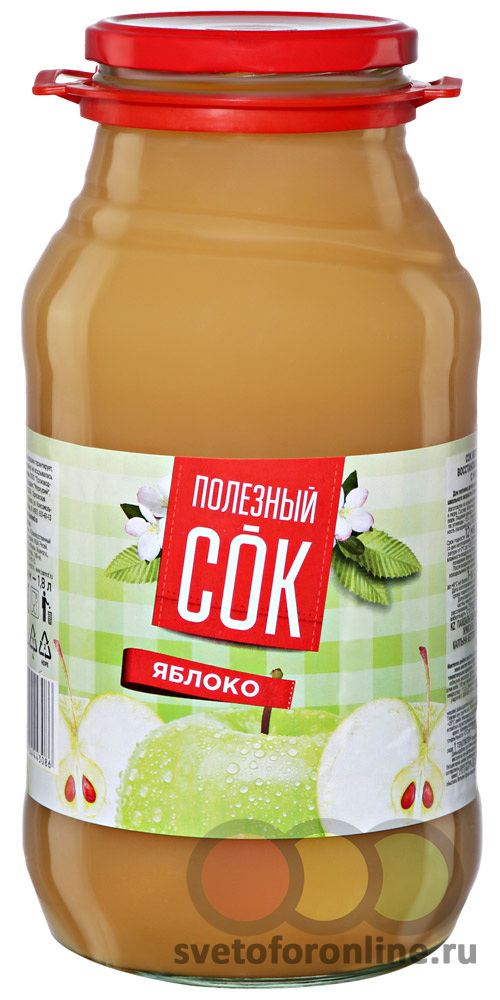 Сок яблочный восстановленный с мякотью ТМ "Полезный сок" 1,8 л. ст.банка ООО "ПХ Меркурий" Меркурий - Купить в магазине "Светофор" город Москва, Юрловский проезд, д 13