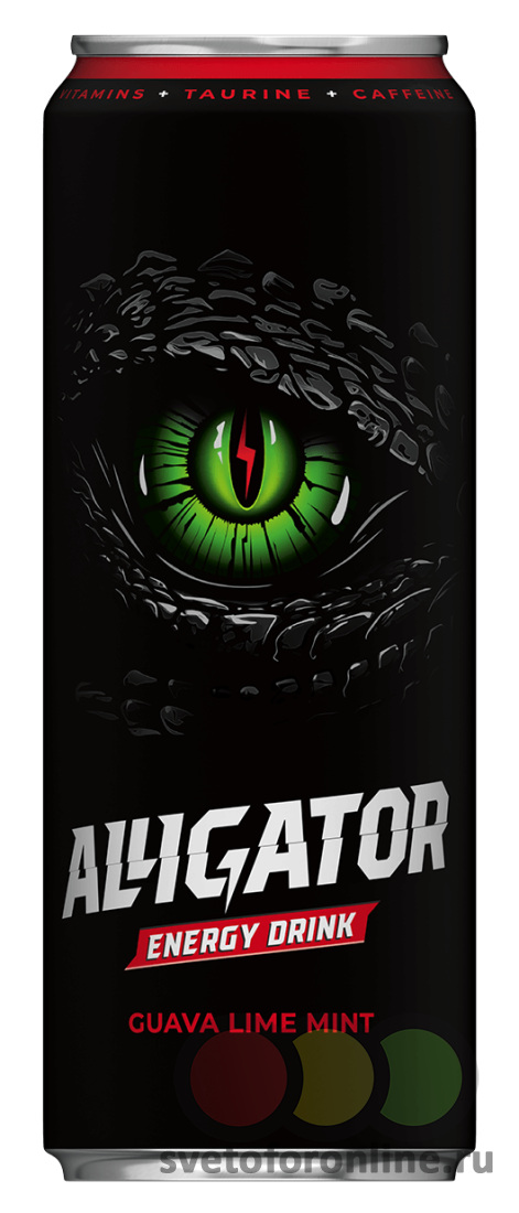 Напиток б/а тонизирующий газ. ALLIGATOR гуава лайм мята, ж/б, 0.45л - Купить в магазине "Светофор" город Москва, Юрловский проезд, д 13