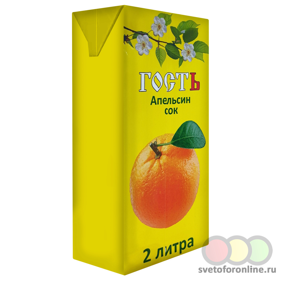 Сок апельсиновый Гость 2л ООО "ЗАВОД ИМПЕРИЯ СОКОВ" - Купить в магазине "Светофор" город Москва, Юрловский проезд, д 13