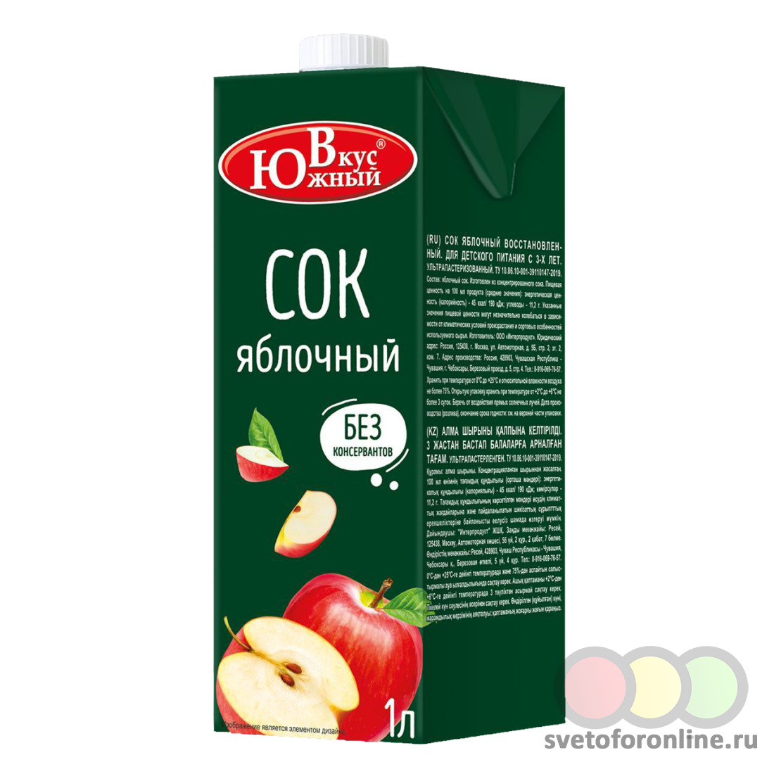 Сок восстановленный Южный Вкус яблоко/мультифрукт 1л ИНТЕРПРОДУКТ ООО (производитель) - Купить в магазине "Светофор" город Москва, Юрловский проезд, д 13