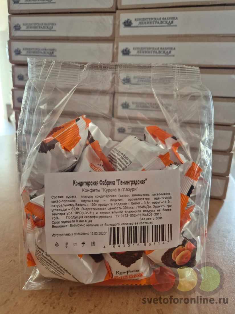 Конфеты в шоколадной глазури Ассорти курага/финик/чернослив 500 гр. Ленинградская КФ ООО - Купить в магазине "Светофор" город Москва, Юрловский проезд, д 13