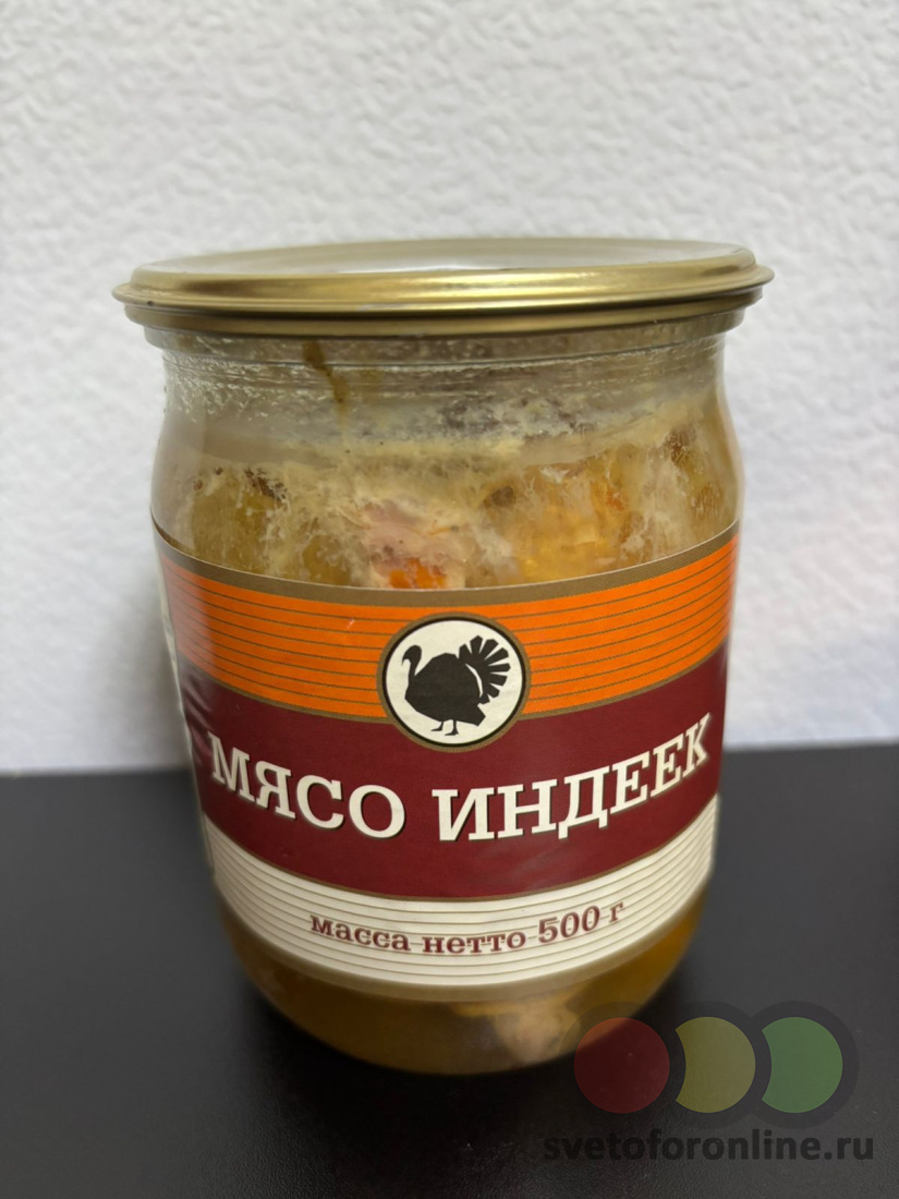 Консервы стерилизованные из мяса птицы . Мясо индеек. СТО 32215908 011 2019 стекло 500 гр - Купить в магазине "Светофор" город Москва, Юрловский проезд, д 13