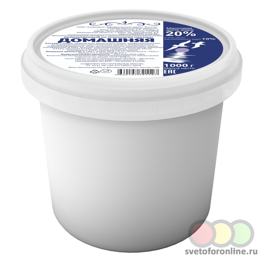 Продукт м/с "ДОМАШНИЙ" по тех. сметаны 20 %, с ЗМЖ, 1 кг Сыродел ООО (Южа) (производитель) - Купить в магазине "Светофор" город Москва, Юрловский проезд, д 13