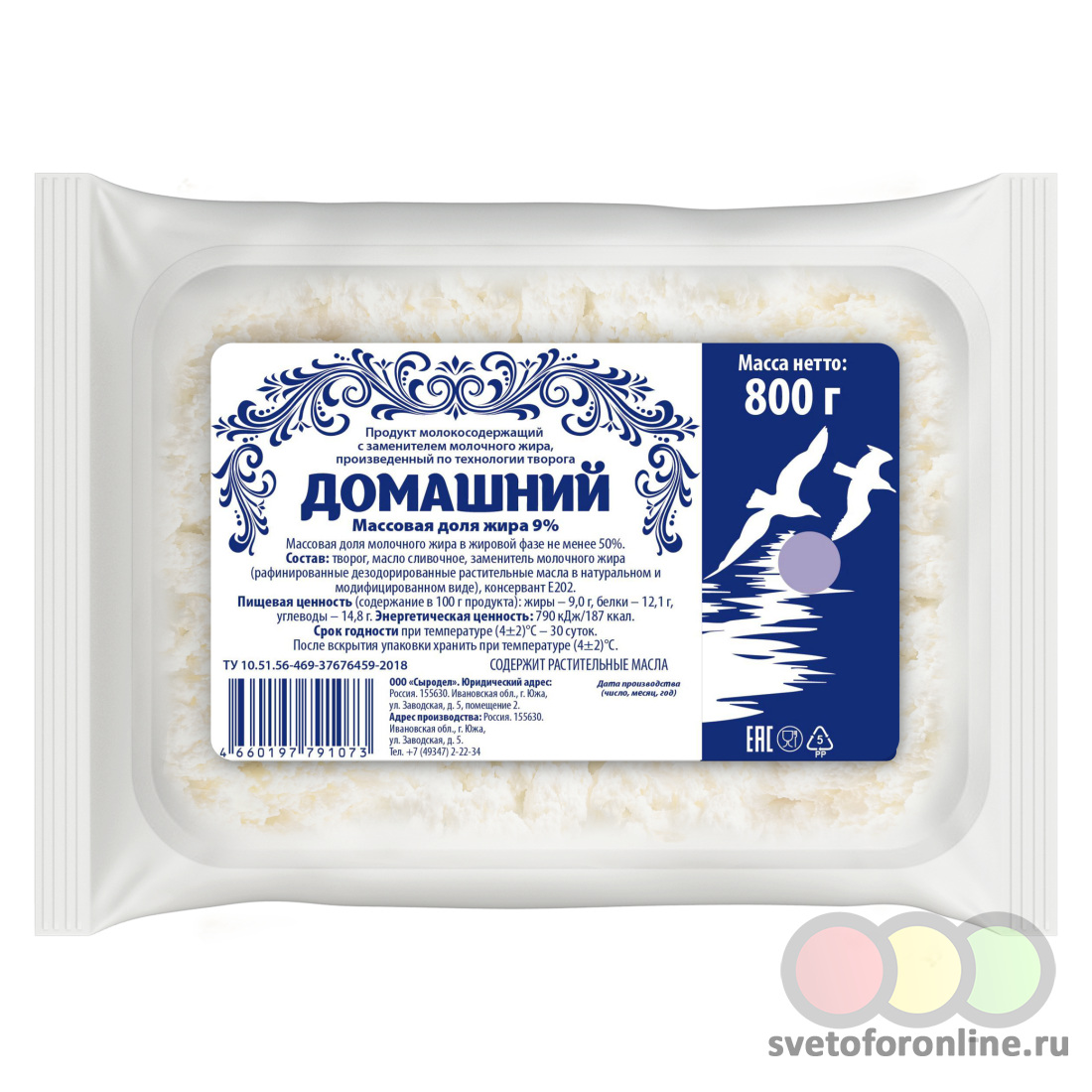Продукт м/с "ДОМАШНИЙ" по тех. творога 9%, с ЗМЖ, 800 г Сыродел ООО (Южа) (производитель) - Купить в магазине "Светофор" город Москва, Юрловский проезд, д 13