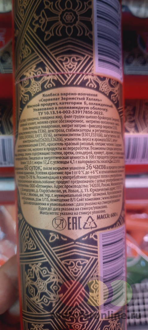 Сервелат Зернистый Халяль шт. 0,6 кг. "Оптимум" ООО - Купить в магазине "Светофор" город Москва, Юрловский проезд, д 13