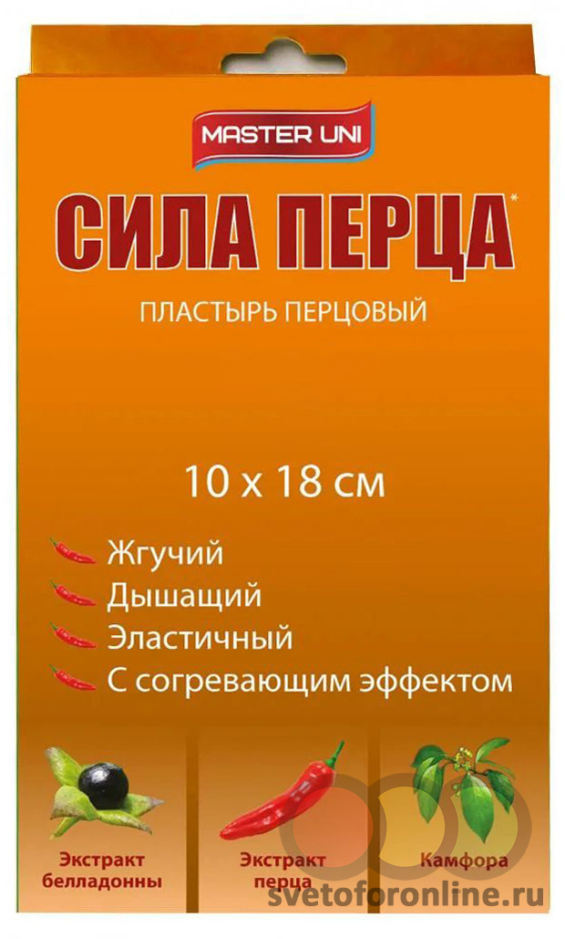 Пластырь медицинский перцовый Master Uni "Сила Перца" , 10 см х 18 см, 5 шт. - Купить в магазине "Светофор" город Москва, Юрловский проезд, д 13