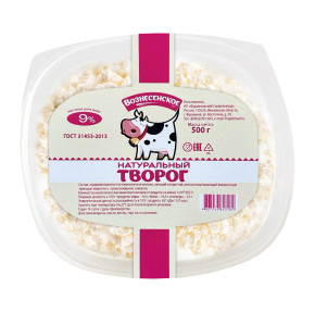 Творог натуральный ГОСТ МДЖ 9% ,БЗМЖ АО «Фурмановский Гормолзавод» 0,5 кг - Купить в магазине "Светофор" город Москва, Юрловский проезд, д 13
