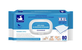 Влажные салфетки "White Whale" для ухода за лежачими больными и интимной гигиены 80шт 230*250мм - Купить в магазине "Светофор" город Москва, Юрловский проезд, д 13
